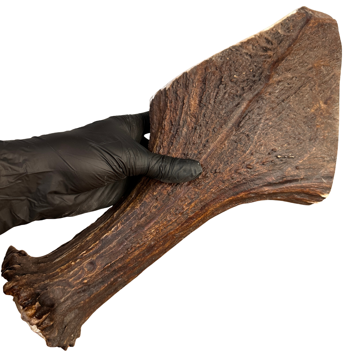 Moose antlers offer unique textures and shapes — from softer paddle cuts for light chewers to denser burr and tine pieces for power chewers. Each listing includes density and measurements so you can pick with confidence.