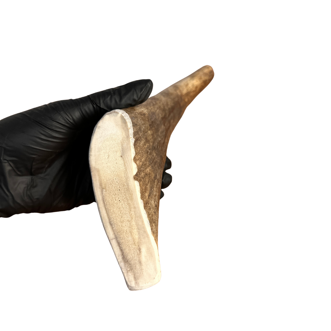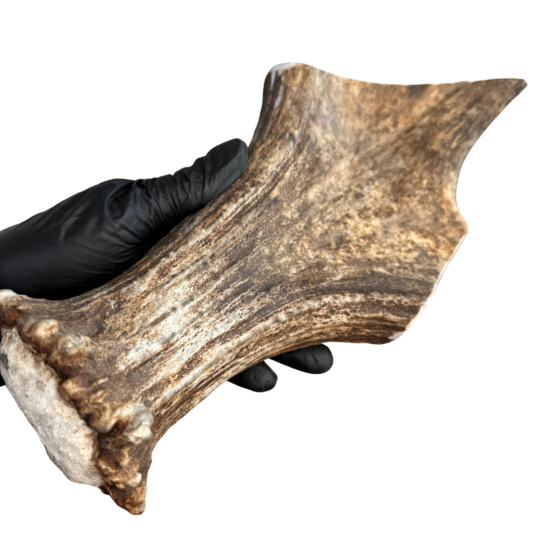 Our Moose Antler Dog Chews are naturally shed, ethically sourced, and hand-processed in Wyoming. Moose antlers come in a variety of shapes and densities — paddles are softer and ideal for light or picky chewers, while burrs and tines are much tougher and perfect for power chewers.