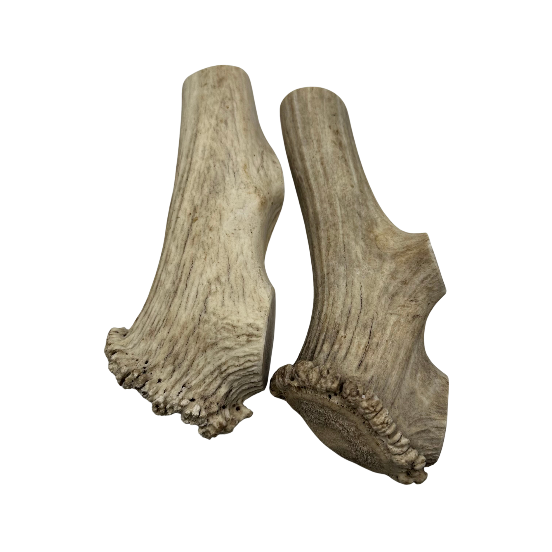 Our Bargain Bin chews are Grade B natural antlers found in the Northern Rockies. Grade B antler will show signs of weathering including lighter coloration and/or micro cracks.